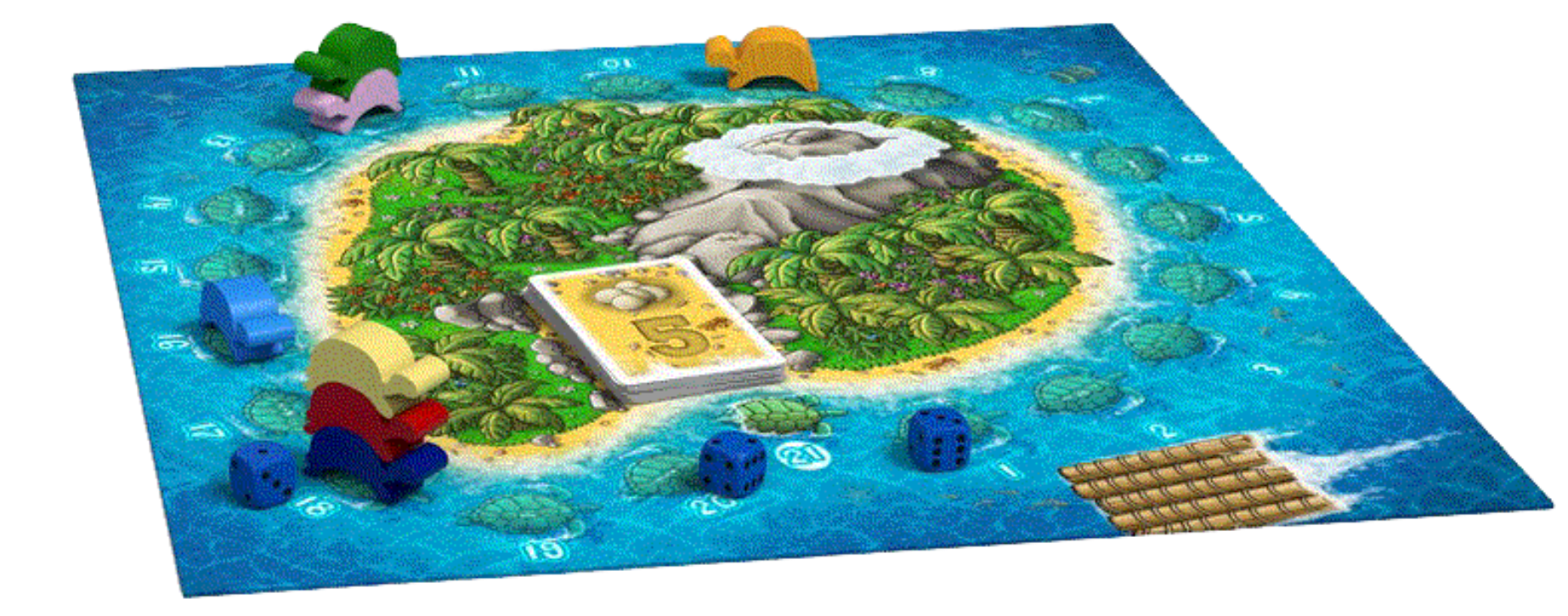 Ce jeu de prise de risque vous emmènera faire des tours de l'île de Mahé. Lancez un, deux, ou trois dés pour aller plus vite, mais attention de ne pas dépasser un total de 7 sinon vous reviendrez à la case départ !