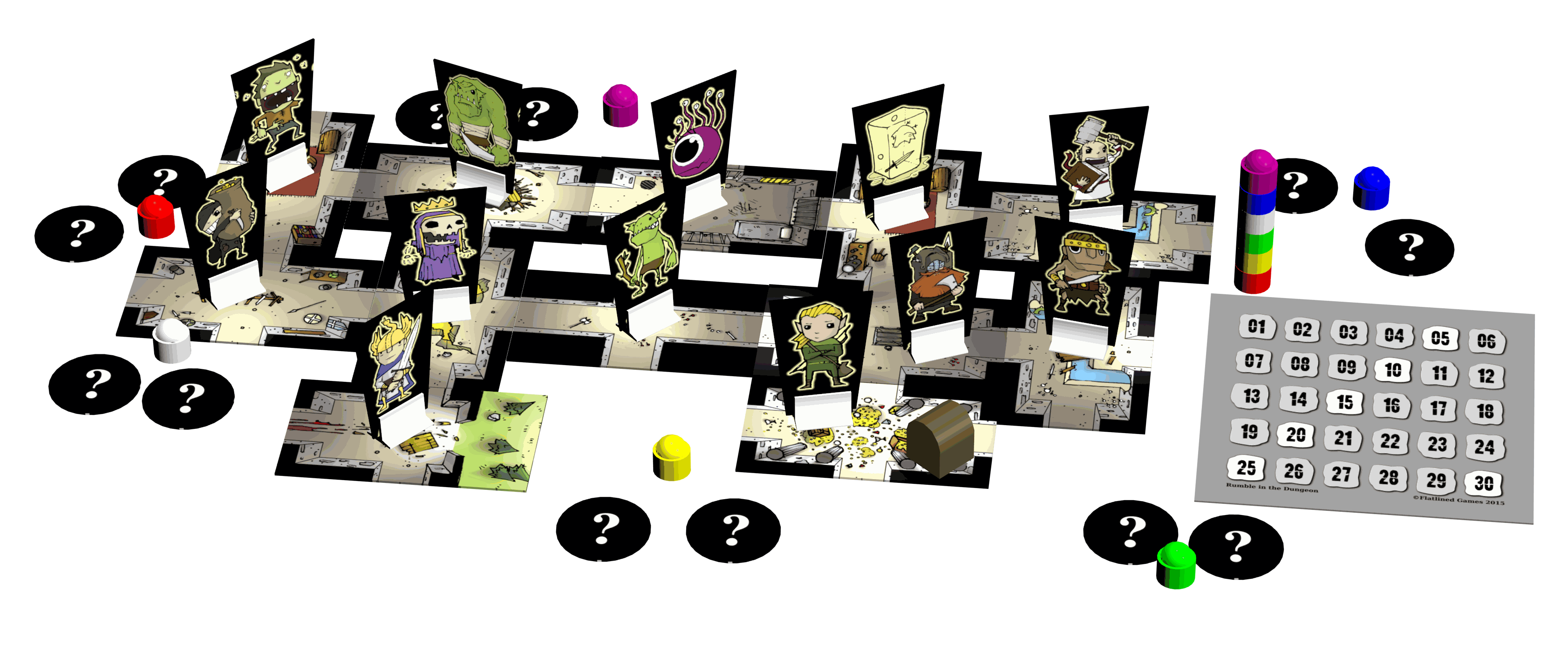 Pas op dat je je identiteit niet verraadt en probeer het laatste in de kerker te blijven! Steel de schatkist van de dode koning! Een snel spel met extra-eenvoudige spelregels!