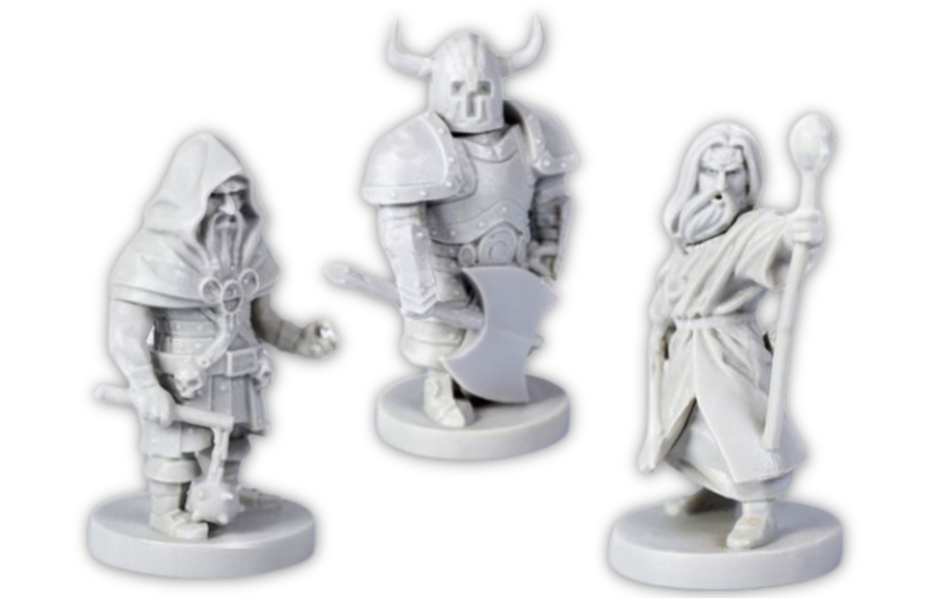 Cette série limitée de figurines viendront enrichir vos parties de Karak en remplaçant les silhouettes joueurs et leurs socles. Au nombre de six, elles pourront être peintes pour plus de réalisme.