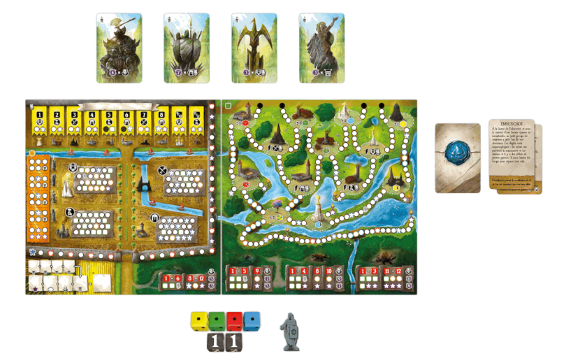 Développez votre duché, explorez les terres environnantes et combattez vos ennemis dans les forêts infestées de monstres, tout cela grâce au lancer de six dés et aux choix astucieux que vous ferez !