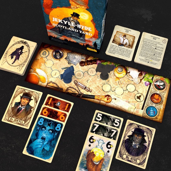 ‘Jekyll & Hyde vs. Scotland Yard’ is een coöperatief slagenspel voor 2 spelers.