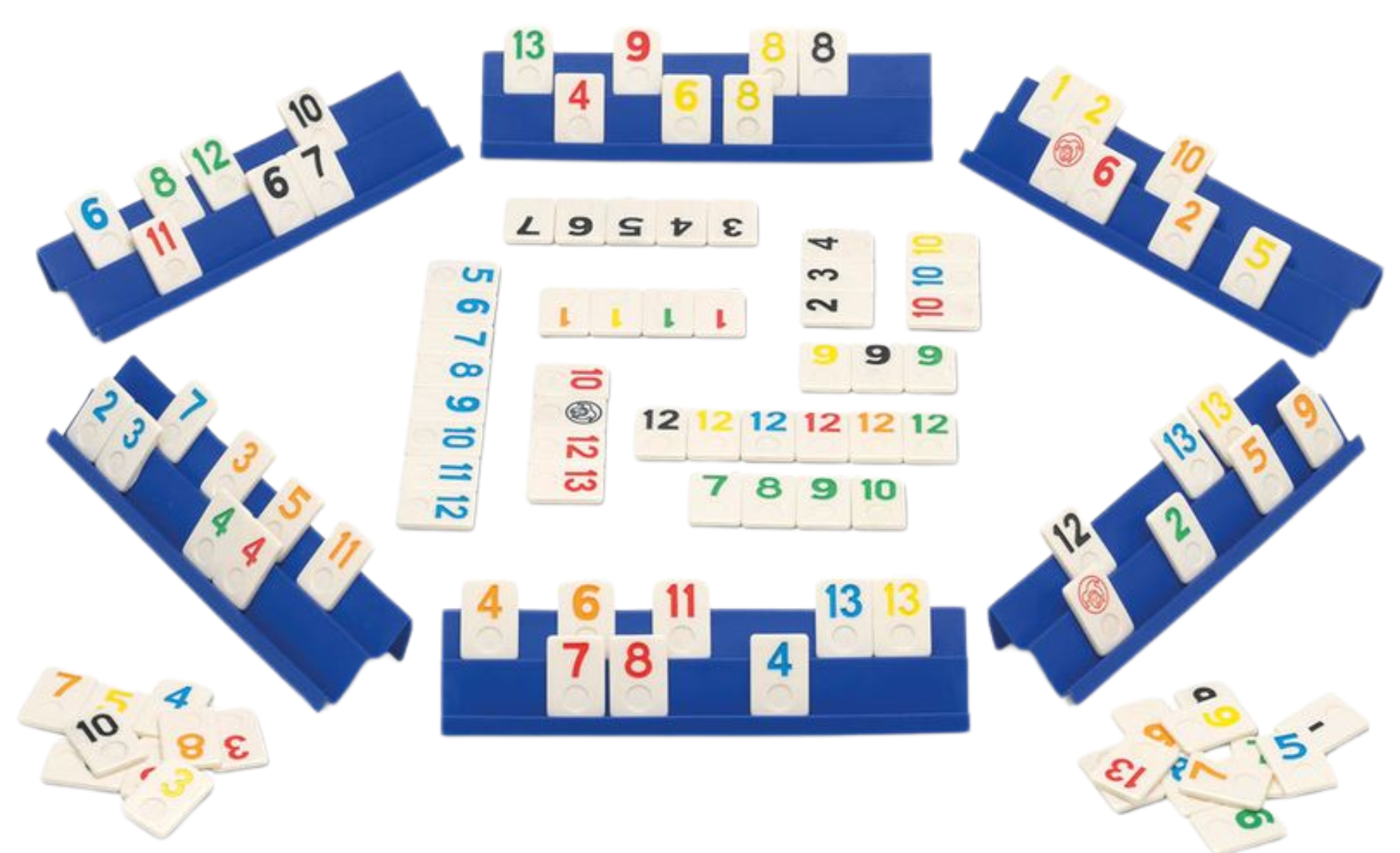Simple and exciting game in which each player must try to combine their chips doing groups of the same number on different colors or doing stairs of the same color and being left without any chips.