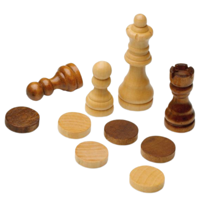 Chess, Checkers, and Backgammon. Three strategy classics presented in wood for that extra warmth in your games.