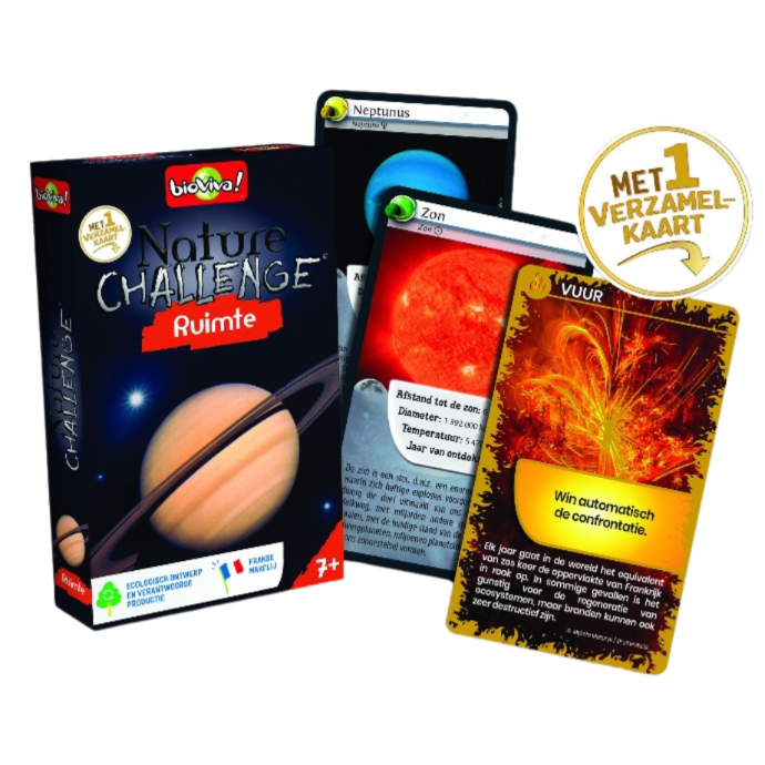 Met de Nature Challenges kaartspellen kun je wedden op de krachten van dieren, dinosaurussen, vulkanen, planeten... Een eenvoudig principe waardoor jong en oud meer leren over de verbazingwekkende (bio)diversiteit van onze planeet.