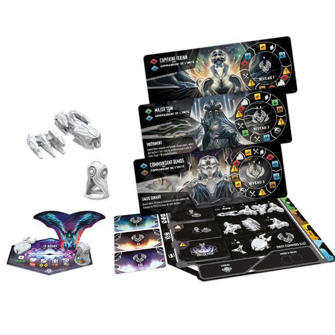 L’extension Embrasement propose des pièces pour un cinquième joueur, deux nouvelles factions (Les Nébulons des nuages et les Acolytes de l’Astre noir), ainsi qu’un solide mode solo. Plusieurs visages, un seul but – Unité, l’autorité oppressive que vous avez fuie, vous a suivi jusqu’à Andromeda’s Edge. Plusieurs chefs d’Unité, de difficulté et de tactique différentes, affronteront votre seule faction en mode solo. Vous pouvez également augmenter les risques dans une partie multijoueur en ajoutant Unité dans le mélange.