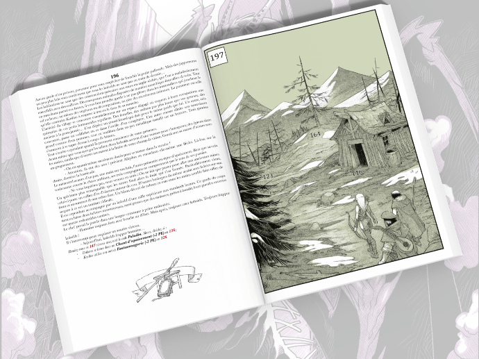 Les illustrations, en plus d’apporter une touche esthétique à ce bel ouvrage, sont utiles pour le jeu. Elles vous serviront à trouver des objets dissimulés, à résoudre des énigmes, à choisir le meilleur chemin à emprunter ou l’action la plus judicieuse à entreprendre.